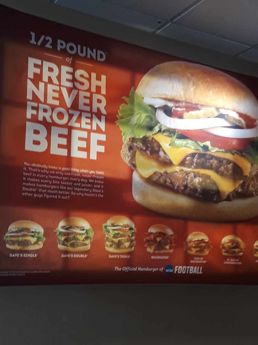 A quarter-pound* of fresh beef, American cheese, crisp lettuce, tomato, pickle, ketchup, mayo, and onion on a toasted bun — just the way Dave intended.